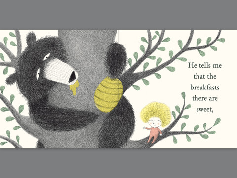 Published in 2014 by Schwartz & Wade, the book is about a girl who visits a bear in the zoo. At the end of the story, after hearing the bear’s longing for his days of freedom in the wild, the girl decides to go home and set her caged bird free.