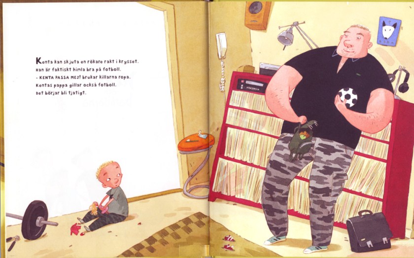 Constantly curious about what Agnes, Mira, and Gittan are doing, Kenta doesn’t see anything wrong with the way girls play, especially when Anton, Nils, and Åke bully the smaller kids on the playground. Kenta and his big strong dad wear camo cargo pants and both like football, yet Kenta joins in with the girls and their Barbie dolls.