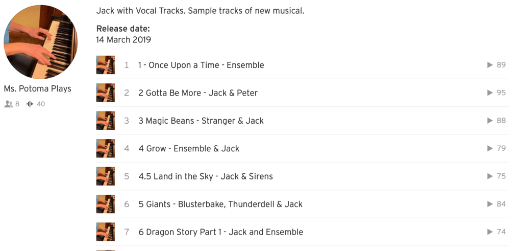 If you have been following my posts, you will know that I am writing a musical for my students based on Jack and the Beanstalk. I find great JOY in writing a lyric and then finding the music that flows with it. There is also joy when I post it for my students to preview, and I see that they’ve listened to some of the other songs on the album 95 times!