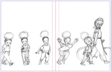 From there I move on to sketches. For JUST LIKE A MAMA​ my process was more traditional from start to finish. I did all the sketches in pencil at a size proportionate to the final trim size.