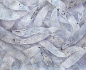 HS: After graduating from Pratt Institute in 2017, I knew I wanted to do illustration and creative work full time, but that I wouldn’t be ready to jump into freelance right out of the gate. I ended up taking a bookseller job at the inimitable children’s bookstore, Books of Wonder, in Manhattan. I thought I knew about children’s books before, but when I started work there, I got totally schooled! They make it a point for all of their employees to actually read the books that they are selling, and be conscious of both classic and modern picture books, middle grade and young adult titles. All of my coworkers knew I was an aspiring #kidlit illustrator, and it was actually my former manager at BoW (now friend), who introduced me to my agent, Kirsten Hall, as Kirsten would come into the store often. After looking at my portfolio and speaking with me, Kirsten agreed to take me on as her client. She pointed to a piece I had done during my senior year of college and to my surprise, told me she thought I should create a story around the piece. It was a standalone illustration of wolves, running and weaving tightly into each other. That image was the impetus for PACKS. At the time I was dumbfounded– I had worked on the piece, put it into my portfolio and didn’t think much more about it.