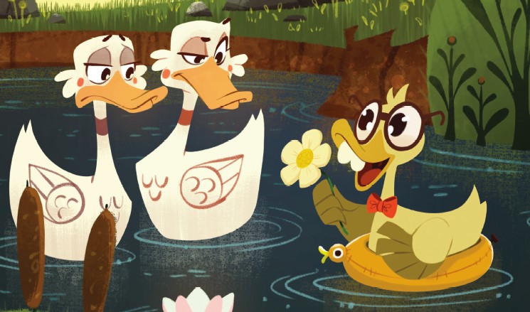 In IT’S NOT LITTLE RED RIDING HOOD, illustrator Edwardian Taylor has added a plethora of characters from fairy tales and fables to the background scenery, including The Ugly Duckling, which can be found on the copyright page.