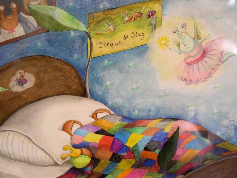 The orbs are most supremely prominent in her slugs. She definitely has a particular affection for slugs and their slime trails, perhaps because they wear their eyes on slender stalks? Or is it that they are a grossly underrated species.