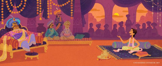 SEVEN GOLDEN RINGS is a gorgeously written and illustrated picture storybook set in ancient India. Bhagat, a poor but very brave boy, dreams of joining the rajah’s musical troupe as a singer and improving his small family’s life. When a sign proclaims that auditions are being held, he journeys to the city bearing the last tiny golden rings from his mother’s wedding necklace and a single rupee coin. As he awaits a chance to audition, Bhagat uses binary logic to make the connected rings last for seven nights – a feat that impresses the staunchest sari-flinging skeptic – and leads to him saving more than just his family.
