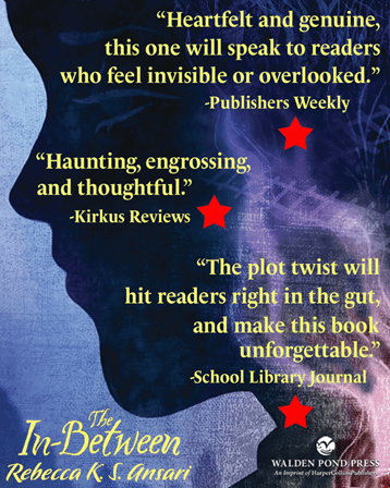 The In Between, by Rebecca K. S. Ansari is a mesmerizing mystery. I read the entire book in one sitting, compelled to turn the page and keep reading. Cooper and Jess’s parents got divorced 3 years ago and Cooper is still angry. He distances himself from his sister, his best friend, his mom. He finally allows himself to connect again when he and Jess discover the In-Between. This story addresses themes of grief, loss, family, divorce, friendship, loyalty, poverty, selflessness, teamwork, and coming of age. It’s the kind of book you savor long after you finish the last page.