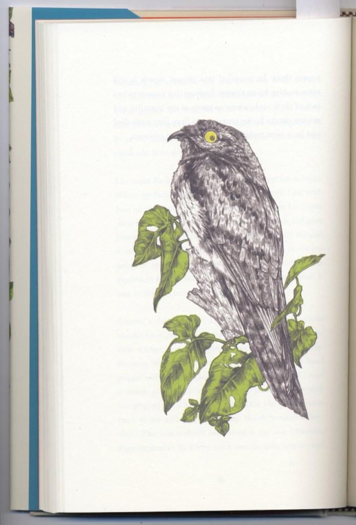 Likewise, with each of many intriguing organisms, teen readers will see connections to her understanding of the world. Science and bizarre traits give these species notable cache. My husband’s comment upon seeing Nakamura’s drawing of the axolotl was “it doesn’t really look like that right?” A teen reader would look it up, and yes, it does. All ribbon eels are born male, then at mating time some change color, become females, and shortly after laying eggs, they die. Their mouths are characteristically open, seeming in amazement of the world around them, which the author connects to her young son’s similarly habitual expression. Young adults will be fascinated by the delicate comb jellies, bizarre Potoo bird, vampire squid, corpse flower, and the deadly cassowary.