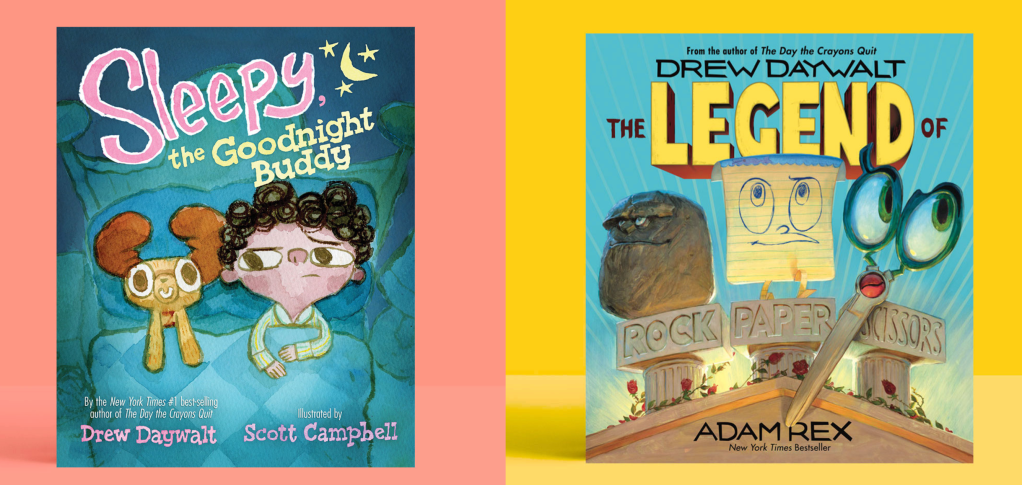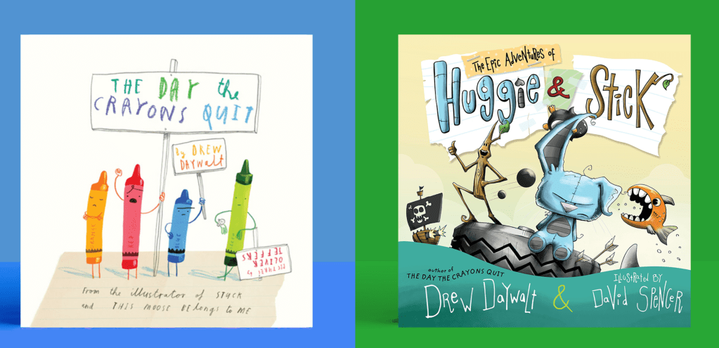 To say Drew Daywalt is an accomplished author is an understatement. He’s written an astounding range of genres, including escapist fantasy, comedy, animated series, screenplays, and picture books. He has received 65 awards for his children’s writing, including the coveted E.B. White Read-Aloud Award and the Time Magazine Top 100 Best Children’s Books of All Time. When it comes to his picture books, I like to think of him as the king of anthropomorphic perspective.