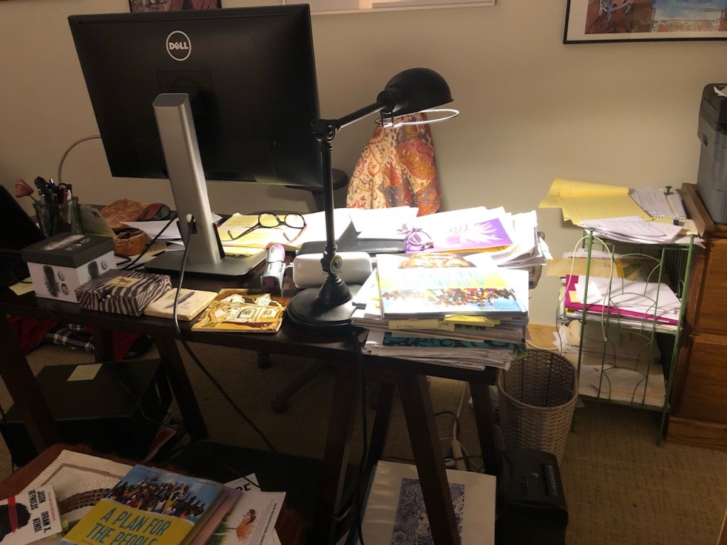 I’m generally at my desk in the mornings, but work at all kinds of hours. I start with an idea and an absolutely awful first draft. It’s astonishing how stories change in the process of many drafts and with the help of my critique group.