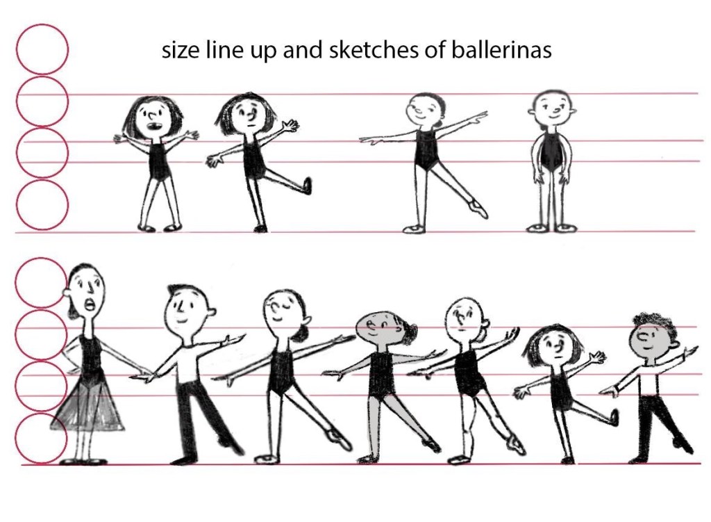 BTR: I begin with really rough thumbnail sketches to get my ideas on paper. I then write out the story like a script with art notes so that my editor can get a sense of what the story is about. My final story is much different from the original thumbnails. It’s a long process of sketching, rewriting, new sketches, rewriting, to final art and manuscript. In my “Ballet Blues” chapter, I drew several ballerinas with distinctive personalities. During the process, I felt as if I made 100 ballerinas from rough sketch to final.