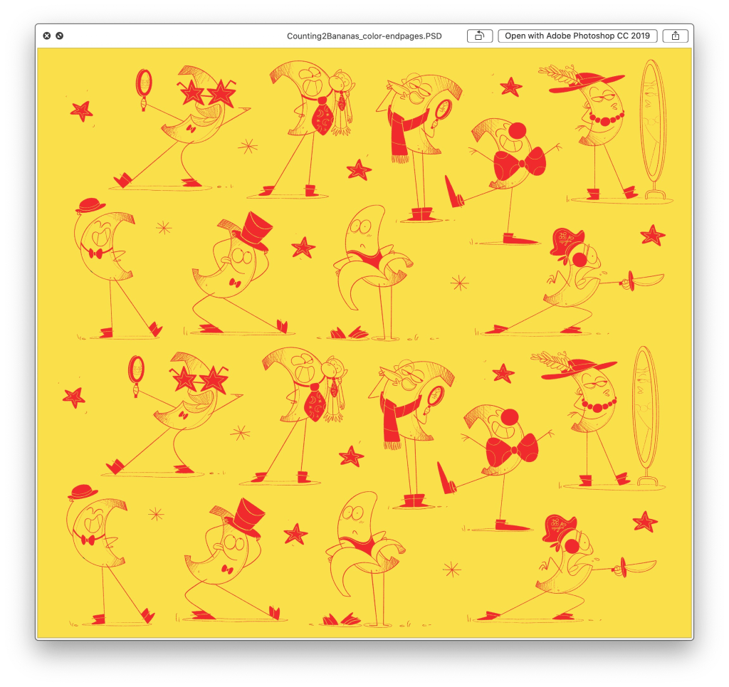 I let go of the rhyme scheme, and did everything I could to make each scene focus more on the various characters that Banana could play. From “Captain Banana,” to a superhero who can “fly”, to a jumping gymnast doing “Banana splits”, Banana was suddenly playing their way through bedtime.
