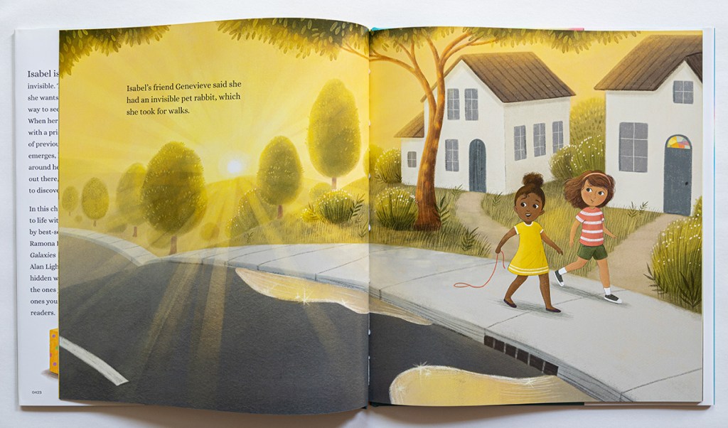 Isabel and the Invisible World, by noted physicist Alan Lightman with illustrations by award-winning Ramona Kaylitzki, presents the challenging concept of visible and invisible light waves in the context of a story about a young girl’s birthday gift. Isabel is intensely curious about invisible things. So much so that her wish for her sixth birthday is not a bike or a toy castle. Isabel has two puppies, a happy interracial home, a funny little brother, and a good friend named Genevieve.