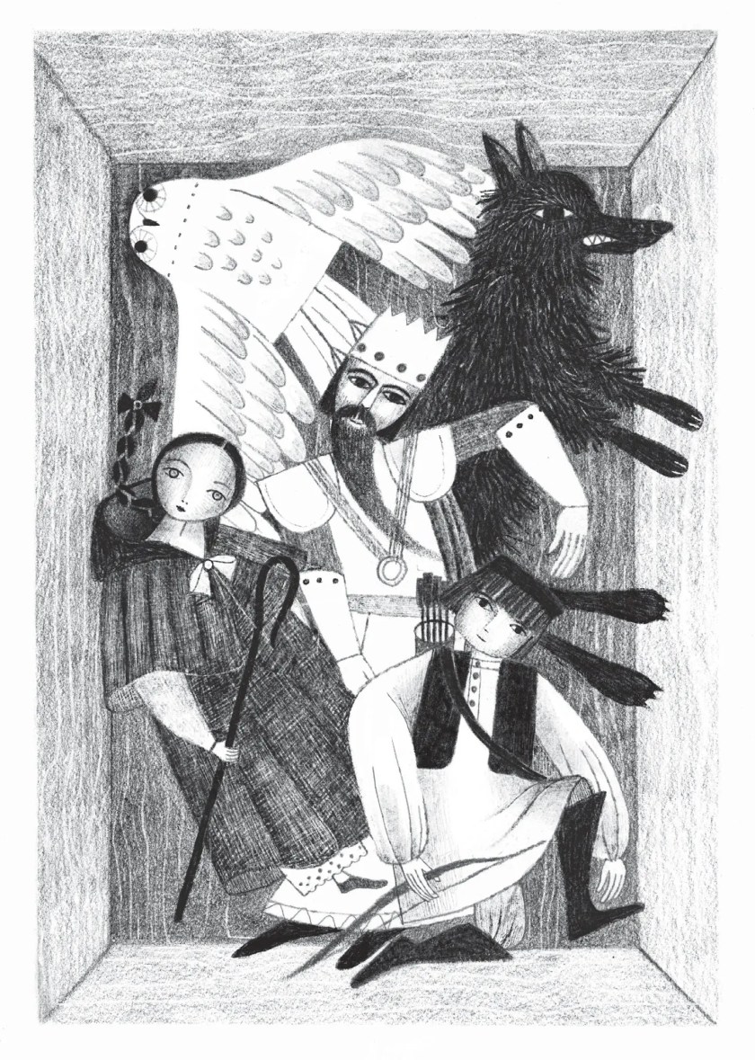 Pencil illustration by Julie Morstad in The Puppets of Spelhorst