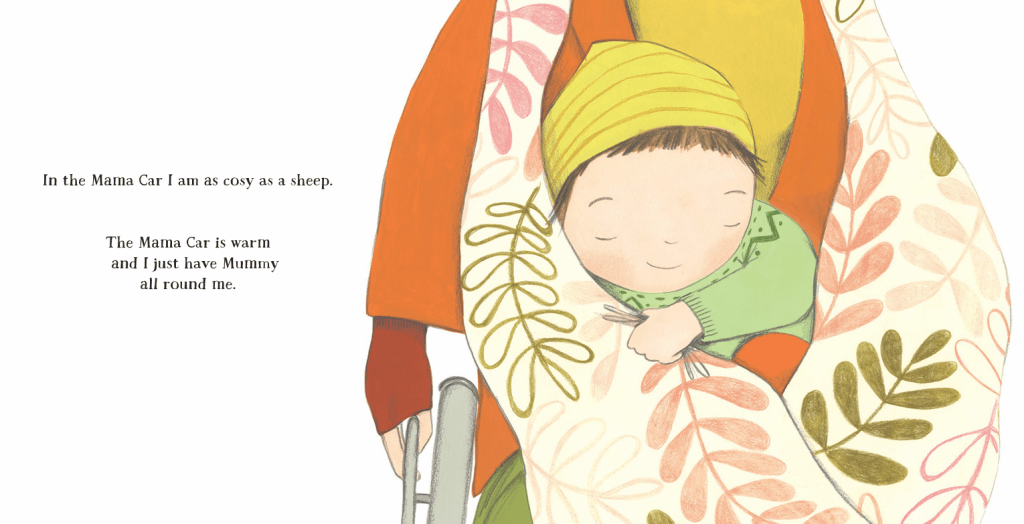 As I mentioned, the anthology Owning It comes out with Faber in August – that’s for 9-14. But also, Lucy’s picture book Mama Car comes out with Little, Brown in November. It’s not a direct sequel to the Joe books – though there’s a grown-up version of Joe, as the daddy lurking in the background. It’s a story told by a very young girl – aged just two or three – about her and her tricycle, and her mummy and her mummy’s wheelchair. It’s hard to exaggerate the gulf between the way that the world – grown-ups, in particular – see wheelchairs, and the way that very young children see them. It’s the difference between an emblem of weakness and decrepitude and all the stigma that implies, and: Oh! Wow! A chair with wheels! A little car that can go in the house! And for the child of a wheelchair-using mother, it’s just part of mummy: a climbing frame, a mobile lap, the safest place in the world… I’m so grateful that Lucy has managed to capture a little glimpse of that brief, magical time when our girls were small enough for her to be their taxi. This core image from the wonderful Karen George sums it all up – we have the original framed on our bedroom wall: