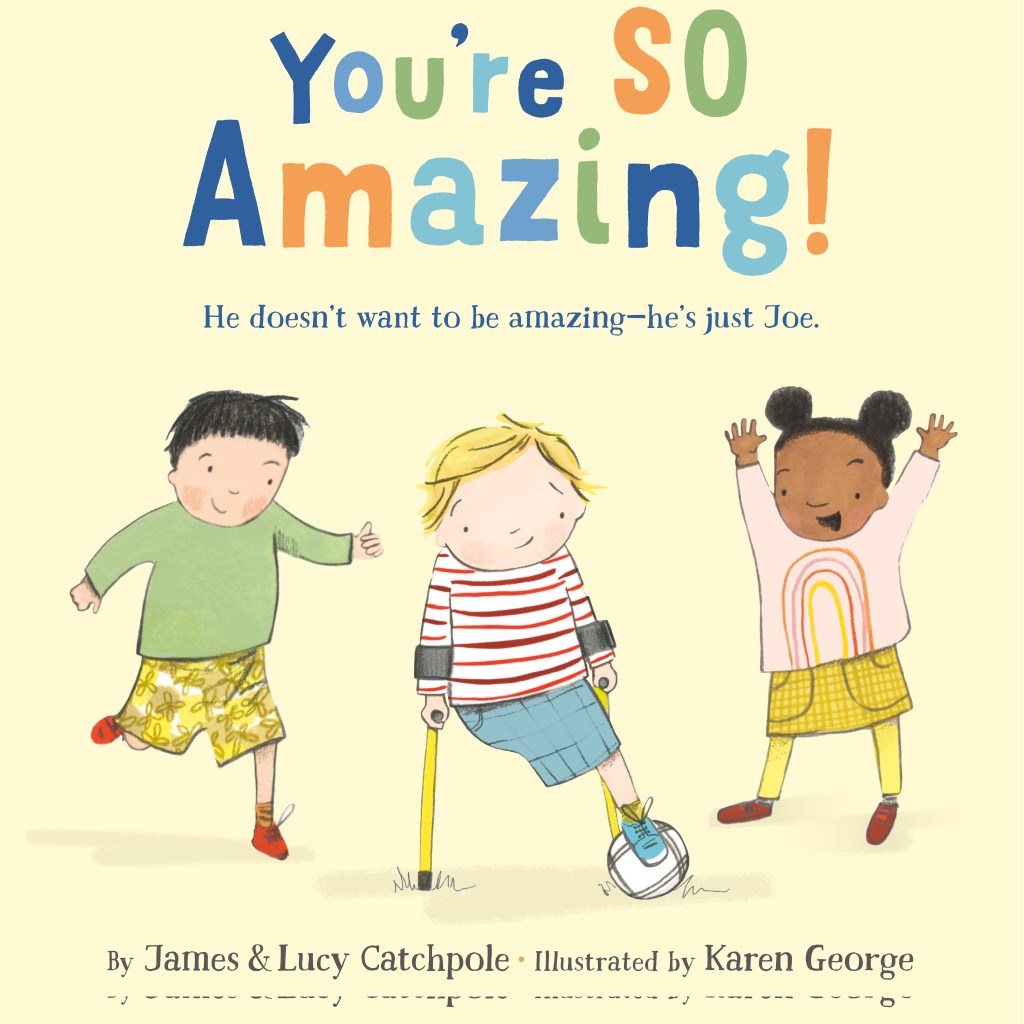 We just missed Disability Pride Month (July!) but I would love to extend the festivities with James and Lucy’s important picture books: YOU’RE SO AMAZING! and WHAT HAPPENED TO YOU? The truth is, there is an abysmal dearth of representation in children’s literature. According to The Cooperative Children’s Book Center, only 7% of the children’s books it received in 2023 “featured a primary or significant secondary character/human subject with a disability” (Dickinson). Needless to say: we need more representation! I will gladly be adding to the collection on September 9, when my own book is published (REWRITING THE RULES) but James and Lucy have already written two beautiful books based on their own experiences.