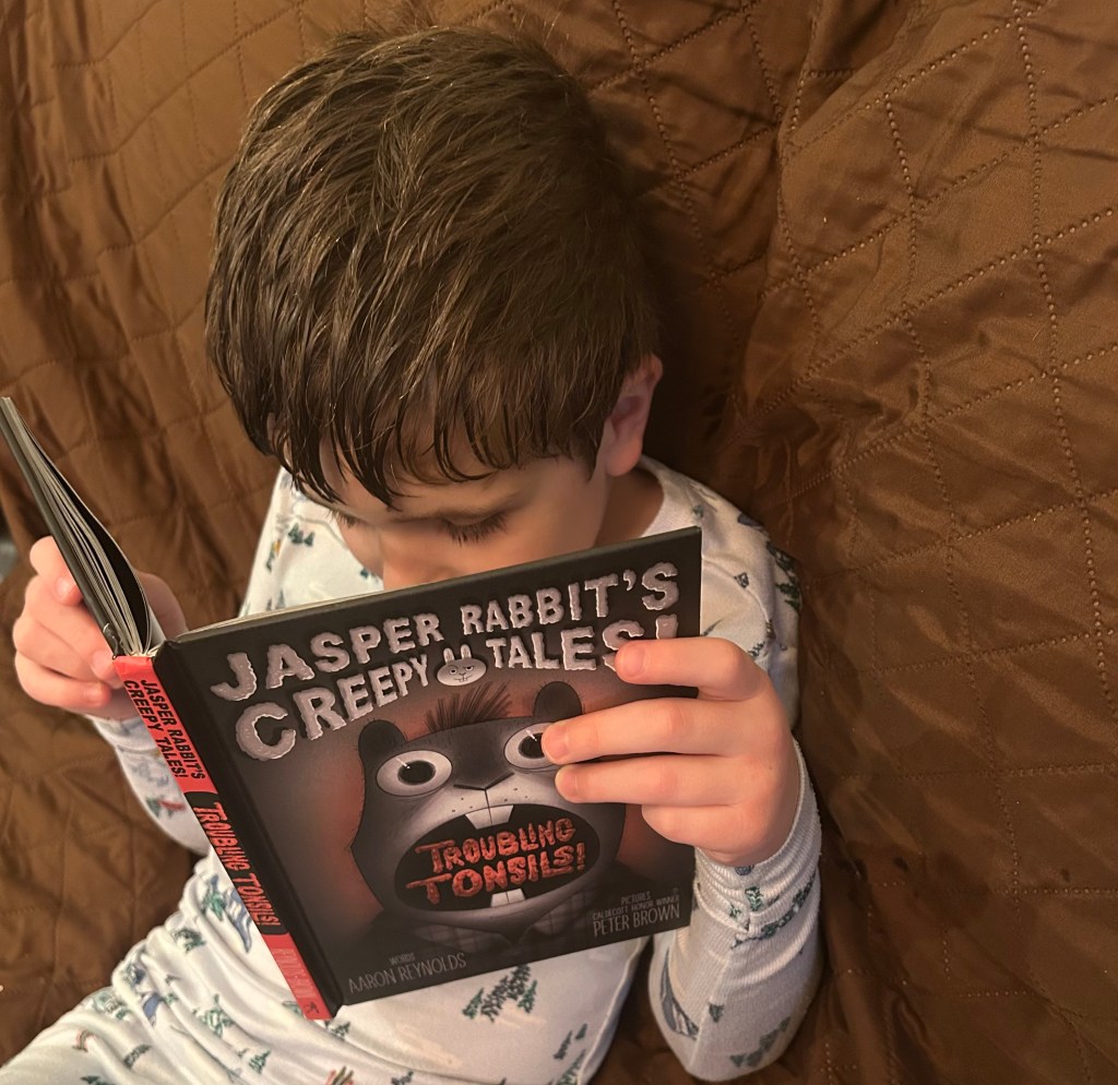 That’s part of what makes Aaron Reynolds and Peter Brown‘s Creepy books so enduring. They’re not holiday gimmicks. They’re year-round weird. And now, with the new Jasper Rabbit’s Creepy Tales! chapter books, they’re growing right along with their readers.