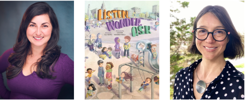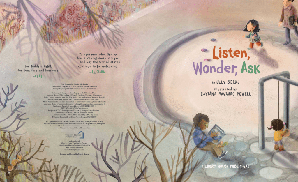It’s my great honor to introduce Listen, Wonder, Ask (Tilbury House Publishers, September 17, 2024) and the gifted author/illustrator team of Elly Berke and Luciana Navarro Powell to our Writers’ Rumpus audience in my first post of 2026. My son and I had the pleasure of meeting author Elly in person, and she is every bit as delightful, warm, and welcoming as her debut picture book. Though I wasn’t able to meet Luciana in person, I’m grateful she agreed to answer my questions about her illustrations that bring Elly’s lyrical story to vivid life. I’m so taken with this book and its heartwarming, inclusive message, I’ve revisited it again and again and gained a deeper appreciation with each reading.