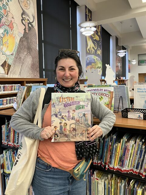 Elly: My inspiration came from my work at the Lower East Side Tenement Museum in New York. As museum educators, we told the stories of immigrants past and present. We sometimes shared a video in which people recalled their “Welcoming Stories” (First Person American). These stories stuck with me as I began to teach ESL in Boston and look for books that gave my students windows and mirrors. I drew on specific memories to write Listen, Wonder, Ask: Russian immigrants moving to my street in Acton, MA in the 1990’s, a Somali student teaching me about sambusas, Haitian teachers making their own books in Creole, my Latino middle school students making fun of Chinese, an Iraqi war refugee driving my nephew’s school bus in Portland, Maine, and many more such experiences with immigrants striving to make a home in the USA. Books were a constant in my childhood, and a highlight was meeting Barbara Cooney with my mother in 1992! I was also inspired by my dad sitting on the edge of my bed and reading me the Hobbit, pausing to explain when I didn’t understand words.