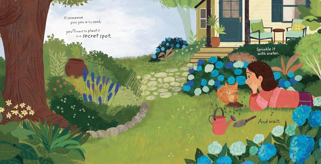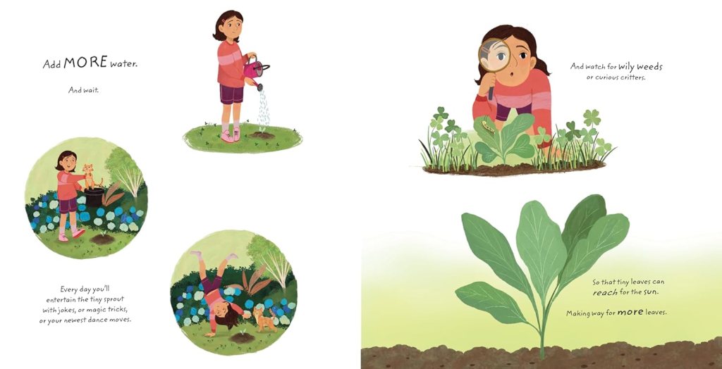 Also, by showing Katie’s patience and strengthening relationship with the seed, I hope readers of all ages see that ideas, inspiration, solutions, and other riches can sprout from simply being present in the moment.
