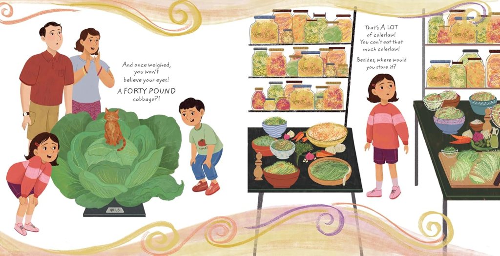 It was amazing to be able to connect with Katie, in real time, to interview her and ask all the questions I needed to make sure this story was a good fit for me. Both she and her mom were very warm, supportive, and helpful over the course of about a year and a half—and I made sure to check in during the “germinating” period of publishing (wink). In fact, there is an incredible picture of nine-year-old Katie and her forty-pound cabbage that her mom took, and gave me permission to include in the book. Were you shocked when you saw it in the backmatter? Even after all this time, I still am a little wowed when I look at the size of it!