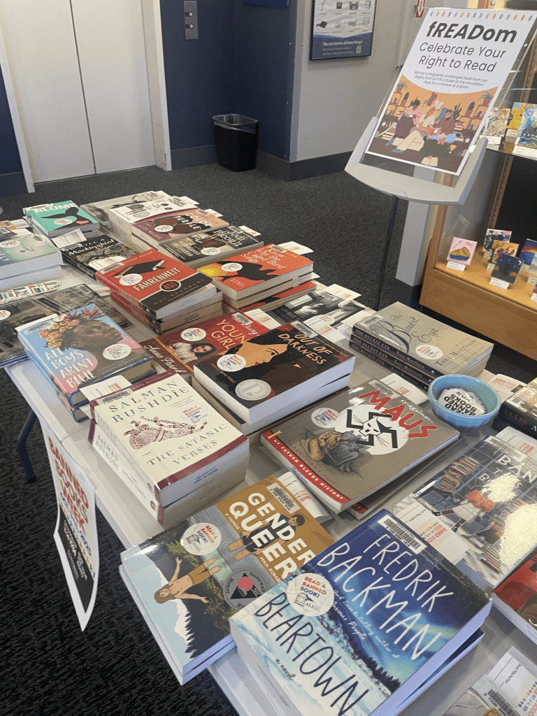 (Memorial Hall Library’s Banned Books Table from October 2025)