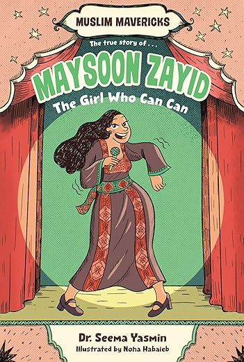 WHO ARE YOU IN YOUR WILDEST DREAMS? is splashed across the back cover of The True Story of … MAYSOON ZAYID, The Girl Who Can Can, written by Dr. Seema Yasmin and illustrated by Noha Habaieb. Published on February 10, 2026 by Salaam Reads, an imprint of Simon & Schuster Children’s Publishing Division, this is the first chapter book in the nonfiction Muslim Mavericks series.