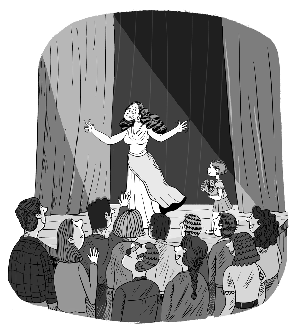 Seema: Thank you. That structure was intentional. I wanted readers to meet Maysoon first through her dreams, because that’s how she sees herself and how she imagined her life. To research her childhood, I interviewed Maysoon, and we talked through her childhood memories: her family, her school experiences, her summer trips to a village in Palestine, and the moments that shaped her confidence. I also reviewed her talks, performances, and writing, and drew on my medical training to explain cerebral palsy in a way that would be accurate but accessible for young readers.