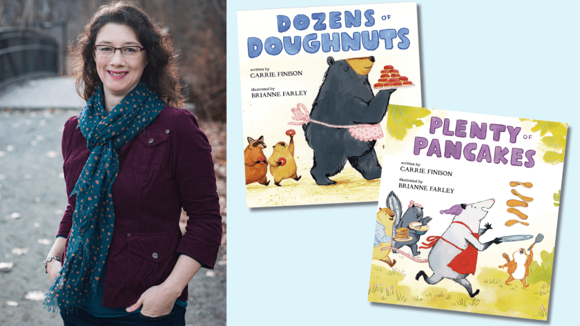 You’ll be whipping up a delicious batch of pancakes after reading this interview with incredibly talented Carrie Finison – just like you likely ran out to purchase your favorite doughnuts after reading DOZENS OF DOUGHNUTS, the first book in this endearing character-driven series. Just like the first book, PLENTY OF PANCAKES has it all – adorable characters, a delightful mystery, and a dash of math, guaranteed to delight young children and whoever is lucky enough to read it with them. Giggles guaranteed!