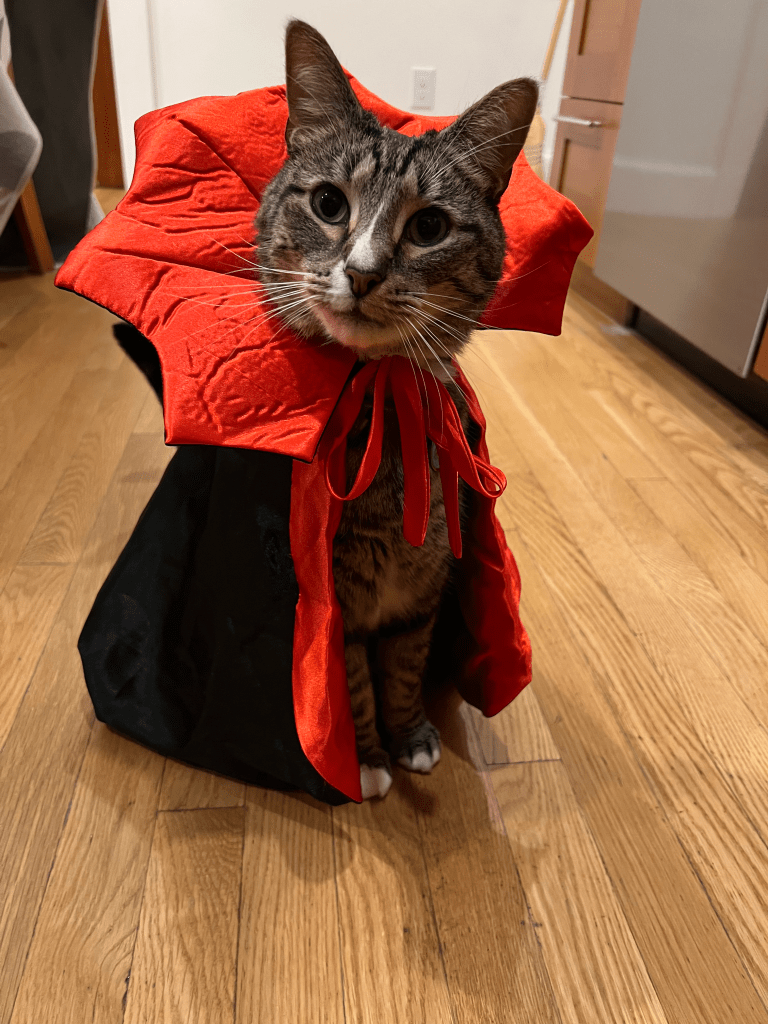 Image 3: The second cat adorably dressed up for Halloween.