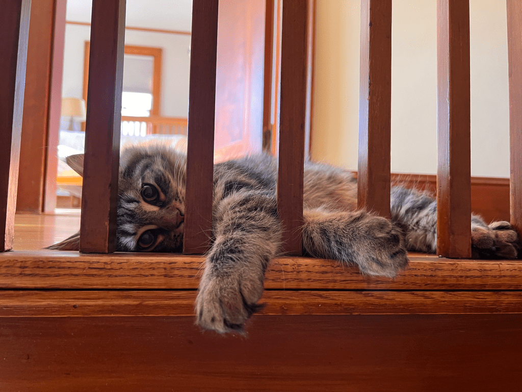 Laura: I love that – and feel the need to share that we use a griddle pan that makes blueberry (our favorite) pancakes in batches of 8! What’s next for you? Also, can you please share photos of your two cats and your attic office?