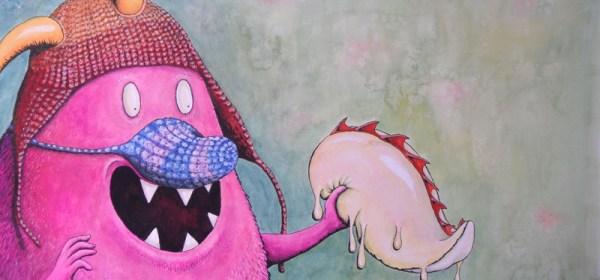 “Armstrong-Ellis fills the page with slime and sludge, and careful readers will even spy monster-themed parodies of works from da Vinci, Cassatt, George Rodrigue, and